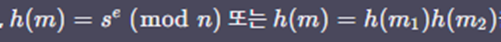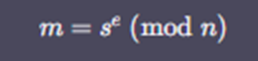 - 서명 값 s와 메시지 값 m에 대한 검증을 검증키 (n,e)를 통해 다음과 같이 수행함
